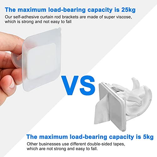 • Unique design:thicker self-adhesive hook, the glue part is larger than the base, more sticky, not easy to fall, no perforation, no trace. The spring clip can hold the curtain rod firmly and is not easy to slide. The hook is made of polished, smooth and delicate, without burrs, and will not hurt your hands.