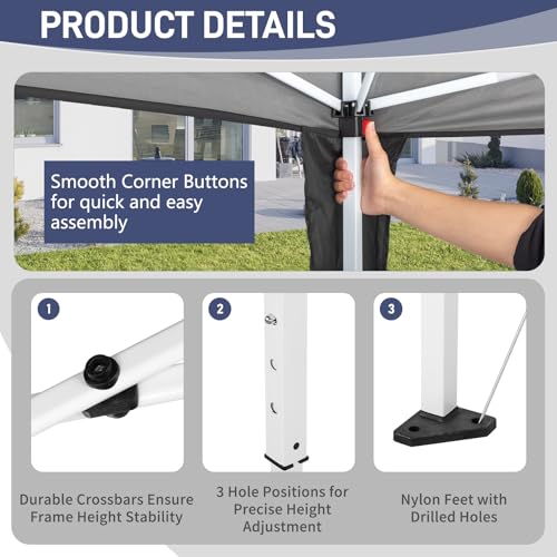 - EASY TO USE: This portable party tent is designed for effortless setup and convenience. With three adjustable heights, it caters to your various needs. It includes a carry bag for easy storage and transport, making it perfect for outdoor activities.