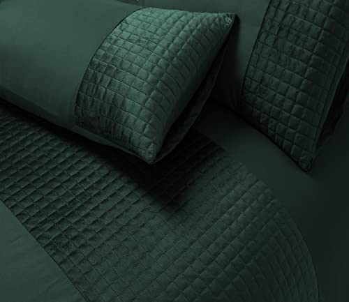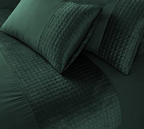 Bronwen Mathews Double Duvet Set Soft Microfibre with Quilted Square Velvet Band Duvet Cover and 2 Pillowcases, Easy Care Wrinkle Free Double Bedding Set of 3 Pcs (Bottle Green, Double)
