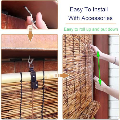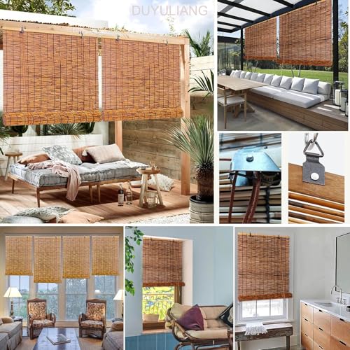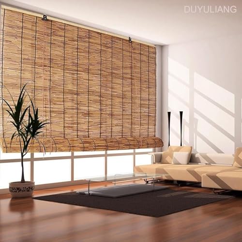 DUYULIANG Brown Bamboo Blinds, Natural Reed Curtains Hand-woven, Retro Roller Blind For Window Door, Outdoor Indoor Pergola Privacy Screen Decorative Rolling Curtain, Customizable(135 x 225 cm)