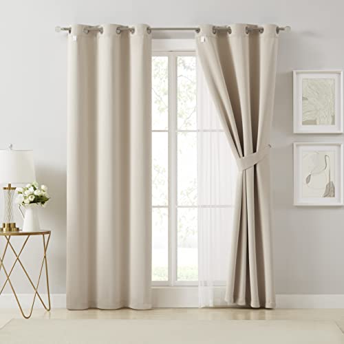 Bujasso Beige 90% Blackout Curtains with Sheer Overlay Mix and Match Double Layer Thermal Insulated Window Panels 84 inch for Living Room Bedroom Beige Drapes with Tiebacks Grommet Top 37" Wx84 Lx2