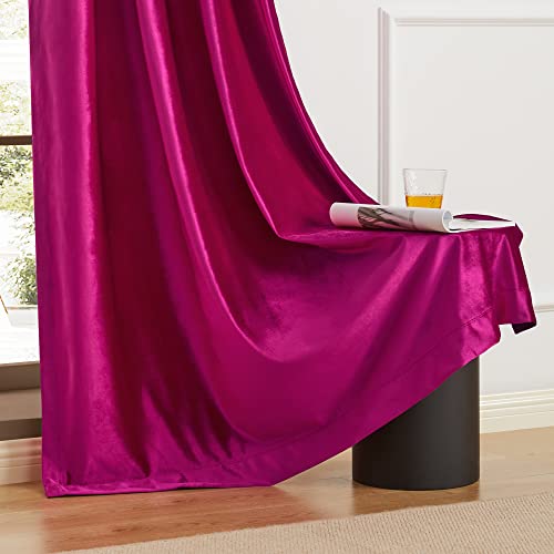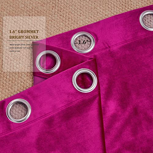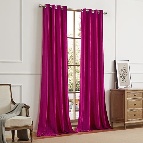 BULBUL Living Room Velvet Window Curtains 84 inch Length- 2 Panels Hot Pink Blackout Window Drapes Curtains Thermal Insulated Room Darkening Decor Grommet Curtains for Bedroom
