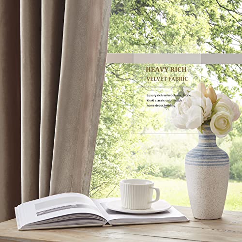 BULBUL Velvet Curtains 120 inch Length- Living Room Taupe Blackout Window Drapes Curtain Thermal Insulated Room Darkening Decor Grommet Curtains for Bedroom Set of 2 Panels