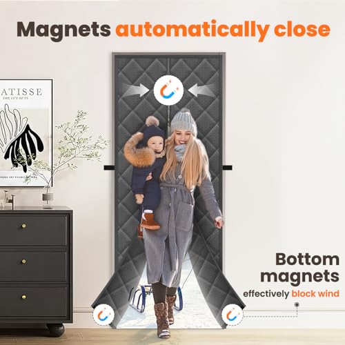 - Insulated Door Curtain – Keep the Cold Out:Our magnetic thermal screen door curtains are crafted from windproof Oxford cloth and thick 220g polyester fiber cotton, designed to keep cold out and maintain a warm indoor temperature during winter. These insulated door cover not only help create a warm space but also reducing your electricity and heating bills, ensuring a comfortable winter for your family