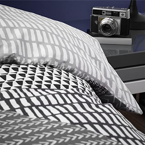Catherine Lansfield Larsson Geo Reversible Double Duvet Cover Set with Pillowcases Grey
