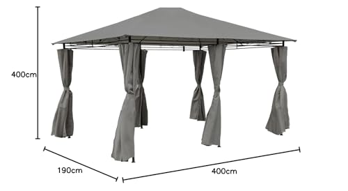 • ENJOY THE OUTDOORS: This gazebo features removable grey curtains, allowing you to embrace the outdoors and socialise without barriers. It is perfect for large events, such as garden parties or family barbecues.