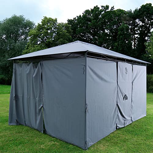 CHARLES BENTLEY 3M X 4M Large Steel Art Gazebo with Side Curtains, Ideal for Garden Events, BBQs, Shower Resistant, Easy Setup (400x300x250cm)