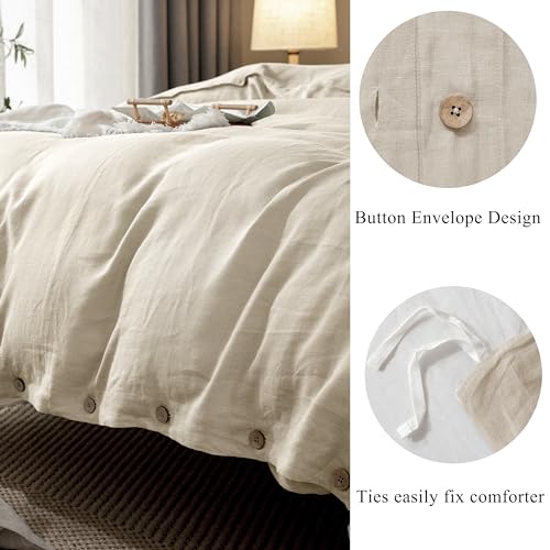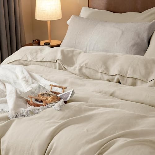 CHUFFED Linen Duvet Cover King, Natural Linen Cotton Duvet Cover 3 pcs Bedding Set Soft Anti Allergic Breathable Bed Quilt Cover with Button Closure,230x220cm Beige