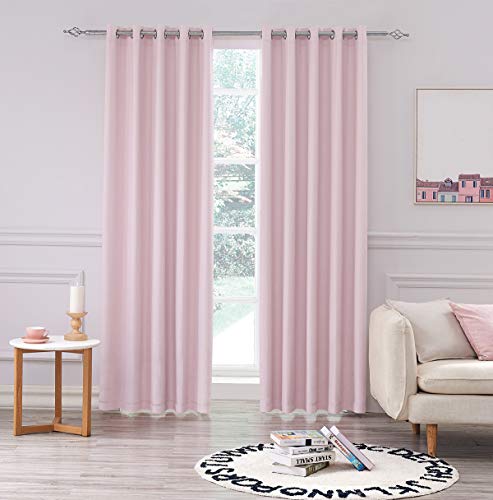 COASTLINE Super Soft Matt Satin 100% Thermal Blackout Blush Pink Eyelet Curtain Window Treatment Drapes 2 panels for Bedroom, Livingroom, Kids Nursery Room W46 x L72 inch