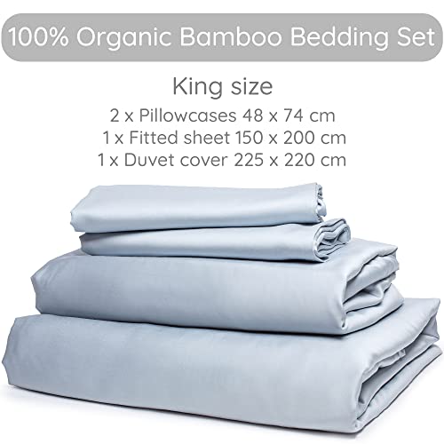 Comfier Sleep Bamboo Bedding – 4 Piece Organic Bamboo Sheets with Fitted Sheet 150x200cm Duvet Cover 225x200cm and 2 Pillowcases – Soft Breathable Grey Bedding King Size