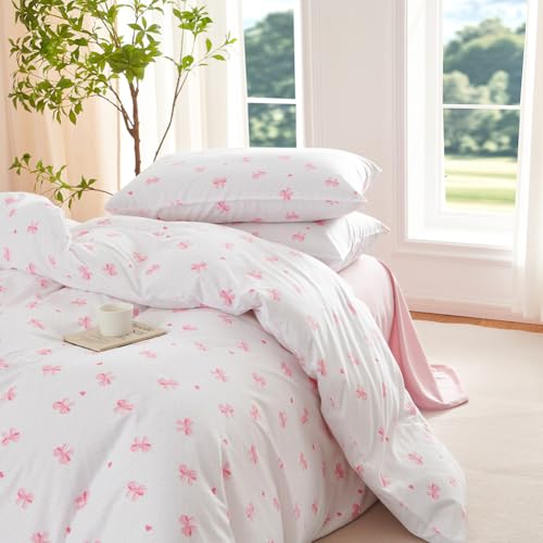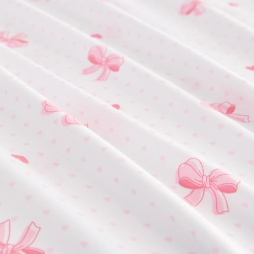 Covebett Duvet Cover Double Pink White Bow Heart Bowknot Microfiber Bedding Set Cute Aesthetic Girls Women Bow Tie Bows Quilt Cover 200×200 and 2 Pillowcases 50x75cm
