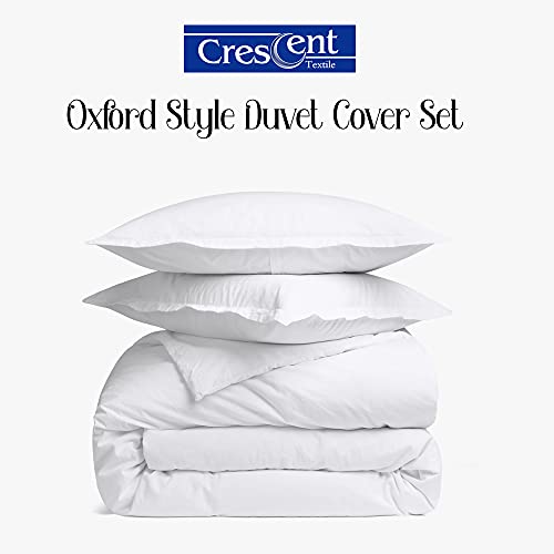 Crescent Textile 800 Thread Count 100% Pure Egyptian Cotton Luxurious Bedding Oxford Duvet Cover Set With Pillowcases (White, Double: (200×200+5cm) + 2pcs Pillow (50×75+5cm))