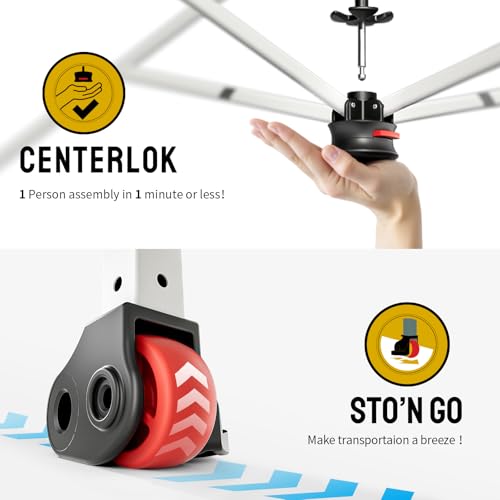 - Instant Setup Technology: Our heavy-duty gazebo boasts patented one-push centre lock technology that secures all four legs with a single push. The next-gen tool-free design enables two individuals to deploy the gazebo quicker than conventional models, ideal for spontaneous events and bustling markets.