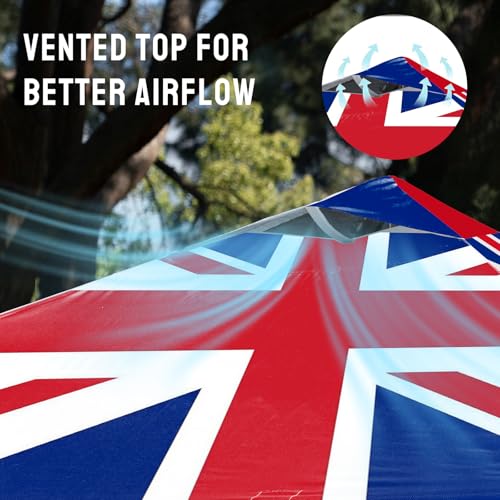 CROWN SHADES 3m x 3m Pop-Up Gazebo – Centre Lock One Push Instant Outdoor Canopy Tent, Heavy-Duty with Carry Bag, Bonus 8 Stakes and 4 Ropes, Union Jack