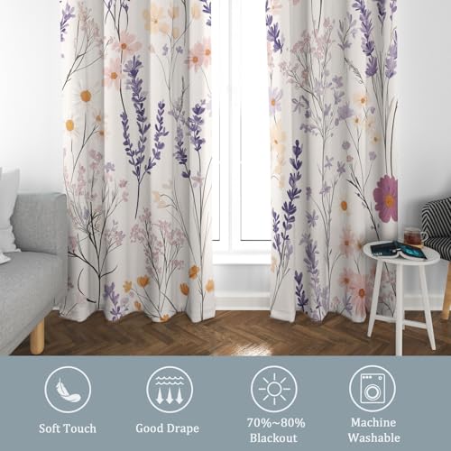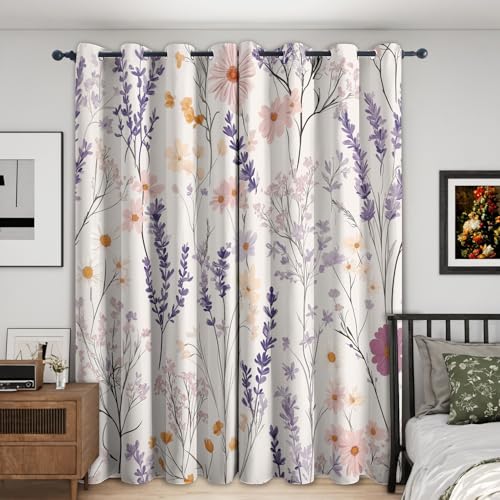 - Daisy Lavender Flower Blackout Curtains: Thanks to the professional printing and dyeing process, the curtain prints are lifelike and have high colour fastness. Exquisite design and extremely decorative, making the window treatments a work of art in the room