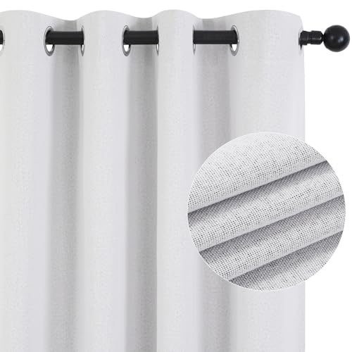 Deconovo 100% Blackout Curtains with Double-sided Faux Linen, Thermal Eyelet Curtains for Boys Bedroom, 66×54 Inch(Width x Length), Greyish White, 2 Panels