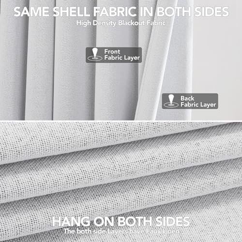 • DECORATIVE EFFECT – Blackout curtains are not only practical, but also have a strong decorative effect. Like other drapes, it can come in a variety of patterns and colours that will adorn your home well. Whether it's a home, hotel, or office, our ring top curtains are a common decorating choice. What's more, the difference between this curtain and other curtains is that its front and back sides are both faux linen. Same material and colour on both sides.