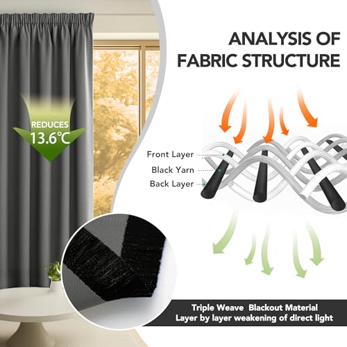 - OEKO-TEX Certified: Crafted with confidence from OEKO-TEX certified fabric, these bedroom curtains meet strict standards for textile quality. This decorative pencil pleat blackout curtains for bedroom, living room and kids room dresses your window beautifully and add a touch of magic and modernity to your room.