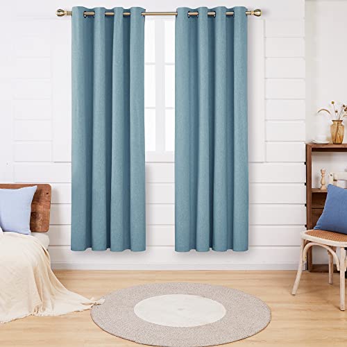 Deconovo Linen Look Window Treatment Thermal Insulated Ring Top Bedroom Blackout Curtains with Coating Back Layer for Girls 46 x 72 Inch Blue Grey Set of 2