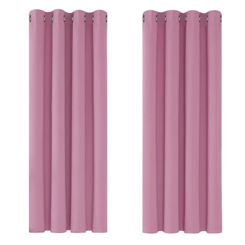 Deconovo Pink Blackout Curtains Solid Thermal Insulated Eyelet Curtains for Nursery 46 x 54 Inch Pink 2 Panels