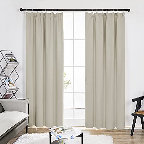 Deconovo Super Soft Thermal Insulated Room Darkening Curtains Solid Pencil Pleat Curtains for Bedroom Light Beige W55 x L96 Inch 2 Panels