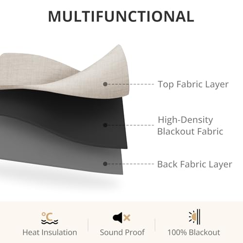 DEFYNEE 100% Blackout Curtains for Bedroom, 50 x 63 Inch Curtains & Drapes, Thermal Insulated, Back Tab/Rod Pocket, Soft Textured Window Panels for Living Room, Kid’s Room, 2 Panels, Cream