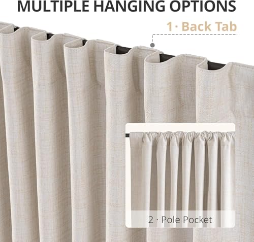 - Flexible Installation & Easy Care:Designed for convenience, each curtain panel features 8 durable back tabs and a 3-inch rod pocket, making it compatible with most standard curtain rods. A hook belt is also included for quick installation with curtain hooks (hooks and rings not included). These curtains are machine washable and easy to maintain – simply hang to remove wrinkles or lightly press with a cool iron and cloth if needed