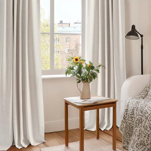 - Elegant Faux Linen-Look Design: These ready made curtains feature a soft, textured linen-look fabric with a full blackout coating, blending vintage charm with modern performance. Their graceful drape and natural texture add timeless style and a cosy, calming ambience to any room