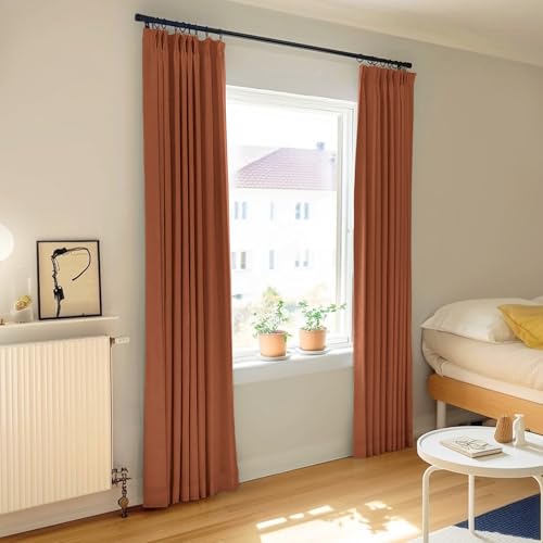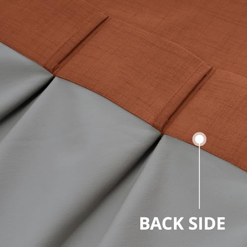 DEFYNEE 100% Blackout Curtains Pencil Pleat 40 x 84 Inch Soft Thermal Linen Curtains for Bedroom & Living Room, 2 Panels,BurntOrange