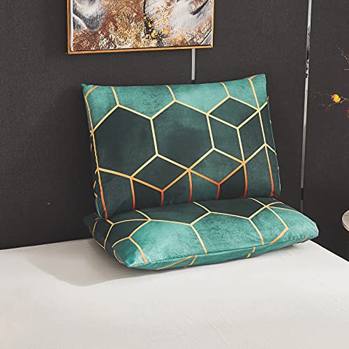 Dencalleus Geometric Printed Duvet Cover Set, Brushed Microfibre Nordic Soft Quilt Covers with Corner Ties, Double Size, Boho Bedding Sets with Zipper Closure and Easy Care Hotel Quality, Green