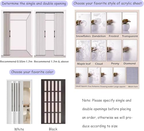 - ❀【Space saving】: Indoor folding sliding door can be opened by 90%. When the door is fully folded, it only takes up 10% of the space of a traditional door. It can be easily folded and put away. Its high transparency allows you to clearly see everything on the other side of the door, which is both beautiful and practical.