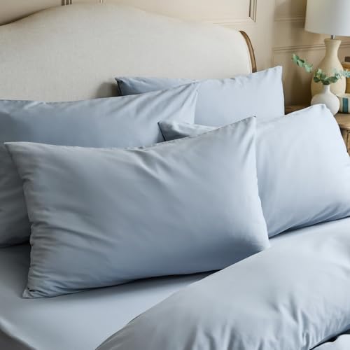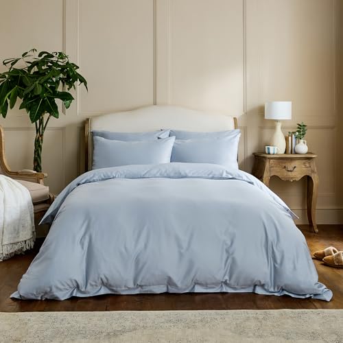 DIP & DOZE Luxury 100% Organic Cotton Original Duvet Bedding Set | Duvet Cover with Pillowcases | Cool And Crisp Finish Percale – Nordic Sky Double