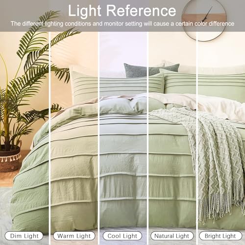 - Perfect Decoration: Green duvet cover has pleated solid color graphic design. The appearance looks a bit wrinkled, giving it a modern and fashionable feel.