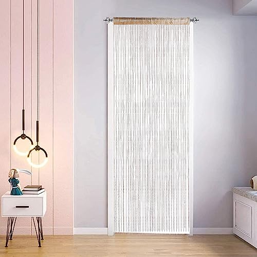Fly Curtains for Doors 39.37×78.74 inch Door Curtain Fly Screen, Tassel Type Hanging Lightweight Shiny Decorative Fly String Curtains for Doors Doorways Champagne Color
