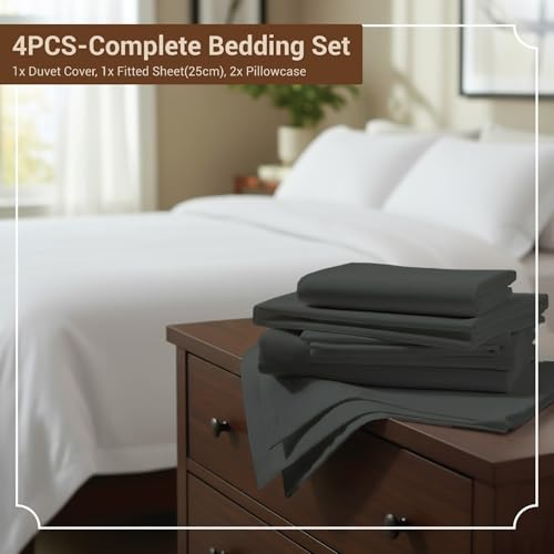 - 4PCS King Duvet Cover Set with Fitted Sheet (25cm Deep): This includes: 1 King Duvet Cover 240×220 cm, 1 King Fitted Sheet 152×200 cm, 2 Pillowcases 50×75 cm – the ideal complete king-size bedding solution.