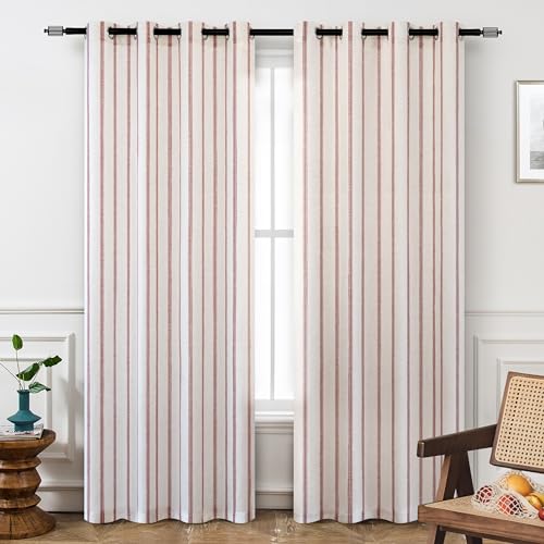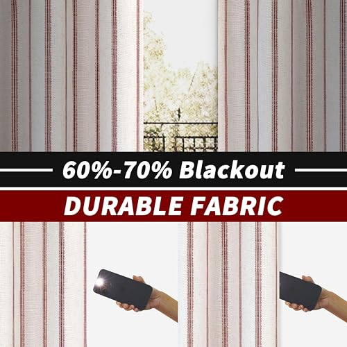 - DESIGN & STYLE: The red vertical striped pattern window panels have a classic and elegant design, match both room color and your customized home styles, fit well for modern / antique / contemporary / trendy home decor. The linen blended fabric and simple patterns will give your window a graceful vintage look, enhance the taste of your house.