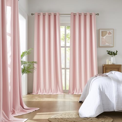 DUALIFE Blackout Curtains Baby Pink 90 Inch Length – Bedroom Black Out Drapery Room Darkening Curtain for Nursery Thermal Insulated Grommet Panel Pair 60 x 90 Inches Long, 2 Panels