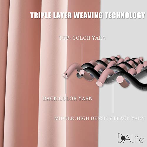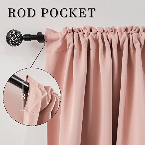 DUALIFE Blush Pink Curtains 45 Inch Length for Bedroom Small Windows – Thermal Insulated Blackout Soundproof Rod Pocket Curtains for Living Room Set of 2 Panels (Rose Blush, 42 by 45 Inch)