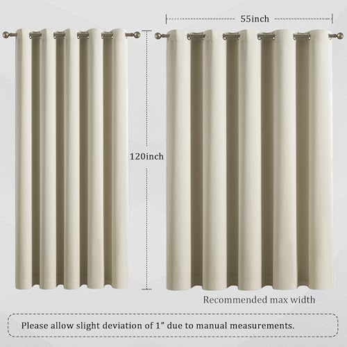 DUALIFE Extra Long Cream Beige 120 Inch Length Curtains 10 FT Blackout Window Drapes for Bedroom Room Darkening Grommet Curtains 60 x 120 Inches Long Buttercream 2 Panels