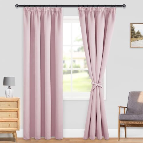 DWCN Blackout Curtains for Bedroom Thermal Insulated Room Darkening Pencil Pleat Window Curtains for Living Room 90 x 90 inch Length, Pink, 2 Panels