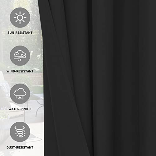 Easy-Going 100% Waterproof Outdoor Curtains Windproof Weatherproof Porch Curtains, Premium Thick Outdoor Privacy Grommet Top Panels for Patio, Gazebo and Pergola, 2 Panels, 54×84 inch, Black