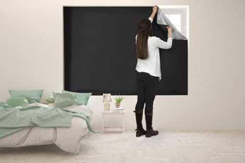Easynight Blackout Blind, 100% Light Blocking Fabric, Large, Fit Any Size/Shape Up To 200x145cm, Made to Measure Service Available, No Drill, Easy Use Temporary Permanent Anywhere