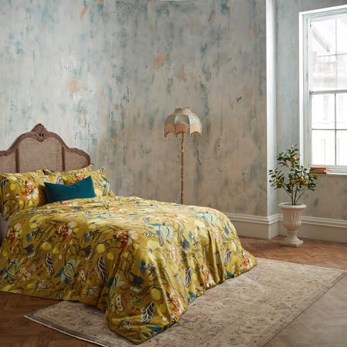 Edinburgh Weavers EW Morton Floral Duvet Set – Luxury Cotton Sateen Bedding, Designer Floral Print, 2000 Thread Count (Ochre – Double)