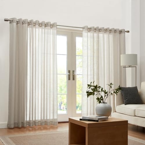 - HIGH-QUALITY HOME DECOR: Featuring rustproof stainless-steel 1.65-inch grommets and made from 100% polyester, this curtain sheer resists fading, stains, and water. The panel also comes with a coordinating hook-and-loop tieback for easy styling.