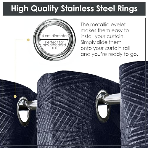Emma Barclay Midnight – Embossed Velvet Woven Thermal Blackout Eyelet Curtains (Navy, Width 90 x Drop 90" (228 x 228cm))