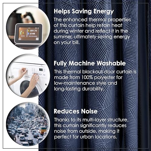 - DURABLE & EASY CARE: Fully machine washable, this thermal blackout door curtain is made from 100% polyester for low-maintenance style and long-lasting durability.