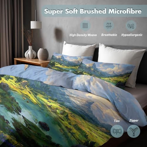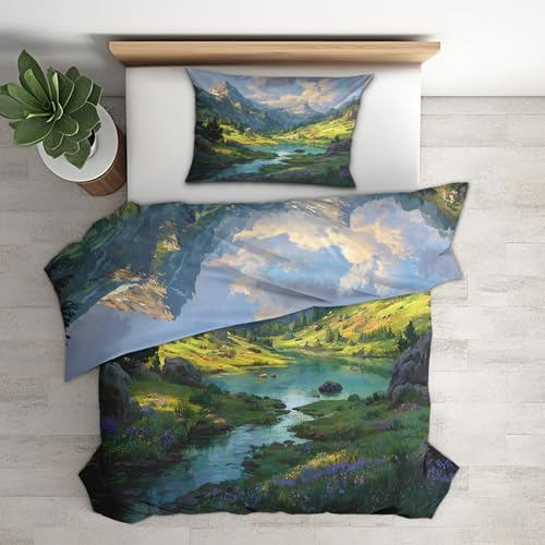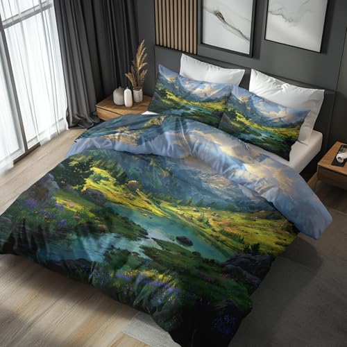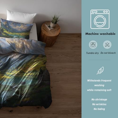Emperor Duvet Cover Set, Forest Mountain Bedding 3 Piece – Nature Scenery Pattern, Soft Hypoallergenic Microfibre Quilt Cover, 2 Pillowcases, with Zip, Bedroom Decor AB659