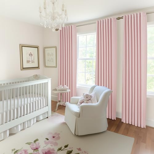 Extra Long Light Pink Blackout Drapes 108 Inches Long 2 Panels for Sliding Glass Door, Lush Decor Linen Blend Pleated Curtains Thermal Privacy Floor to Ceiling 50"W x 108"L Large Window Curtain 2 Burg