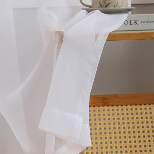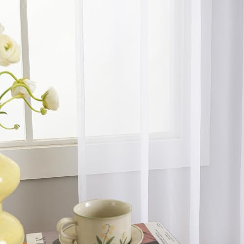 Extra Wide Sheer Curtains White 84 Inches Long, Window Treatments Rod Pocket Volie Drapes for Living Room/Bedroom, 108 IN Width Semi Outdoor Curtain Panels for Patio, Lawn, Garden, 108"x 84", 2 Panels