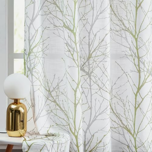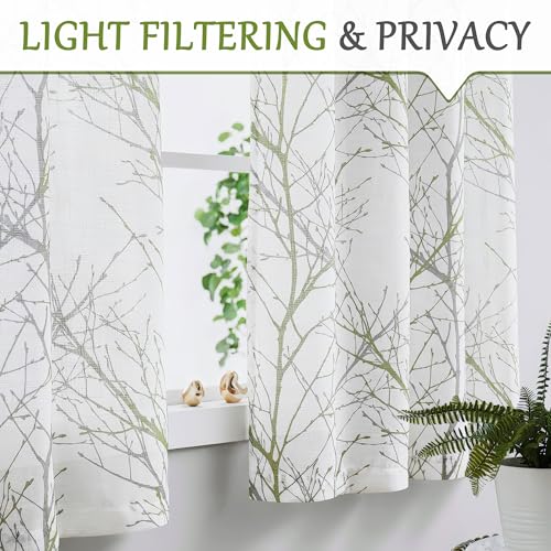 - NATURAL INSPIRED PATTERN: Green and grey tree branch print on white background open weave linen Semi Sheer inspires a modern aesthetic twist with the bold and dramatic natural painting pattern. These print curtains will certainly upgrade your home d閏or at no cost, perfect for living room, bedroom, family room, dining room, kitchen, farmhouse, studio, Kids Room.